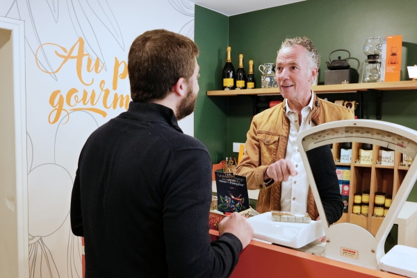 Chocolats, café en grains, thé en vrac, huiles, vinaigres, truffes, épices, tartinades, biscuits, gâteaux de voyage, champagne et vins sont disponibles pour satisfaire vos papilles de gourmets.